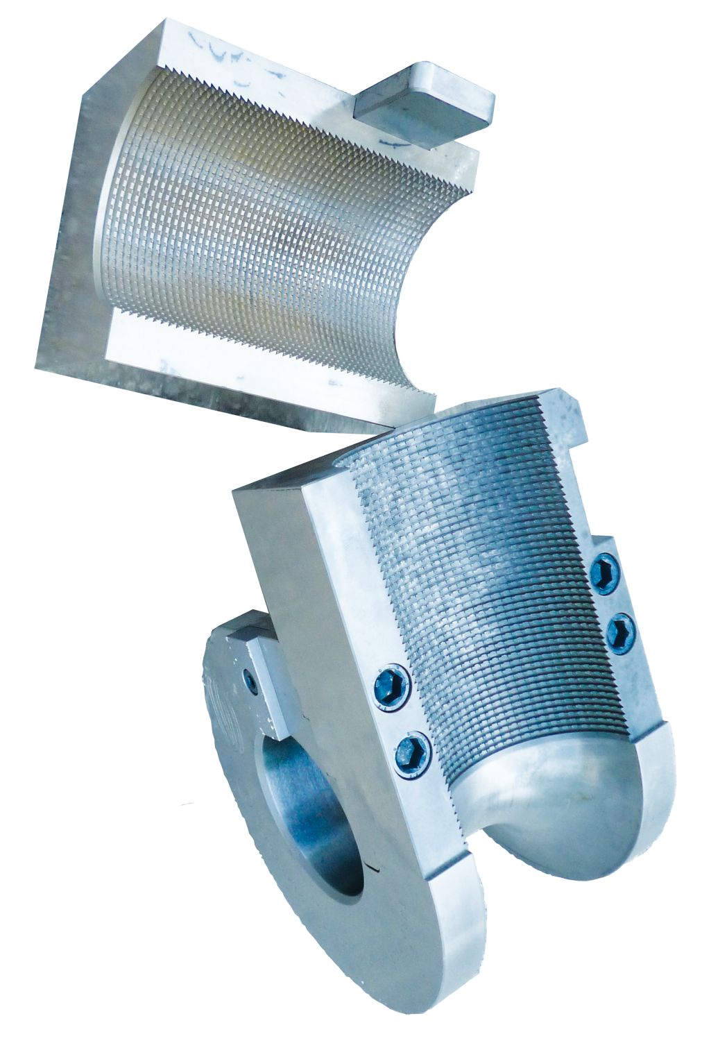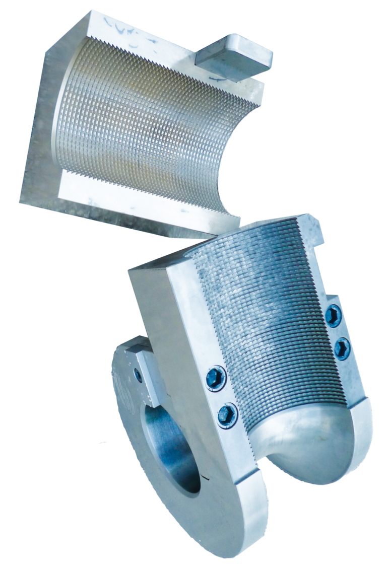 Possibilità di avere tasselli riportati intercambiabili per differenziare la tipologia di presa, ad esempio liscia, rigata,con erosione a tuffo o diamantata.